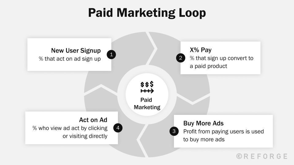 This leads to the concept of the “paid marketing loop.” Essentially, the payback period measures how quickly you can recoup your acquisition costs and reinvest the returns into the paid acquisition loop: