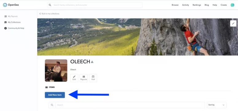 Thereafter, you can click on “Add New Item” and upload your NFT item, which can be an audio, image or 3D model: