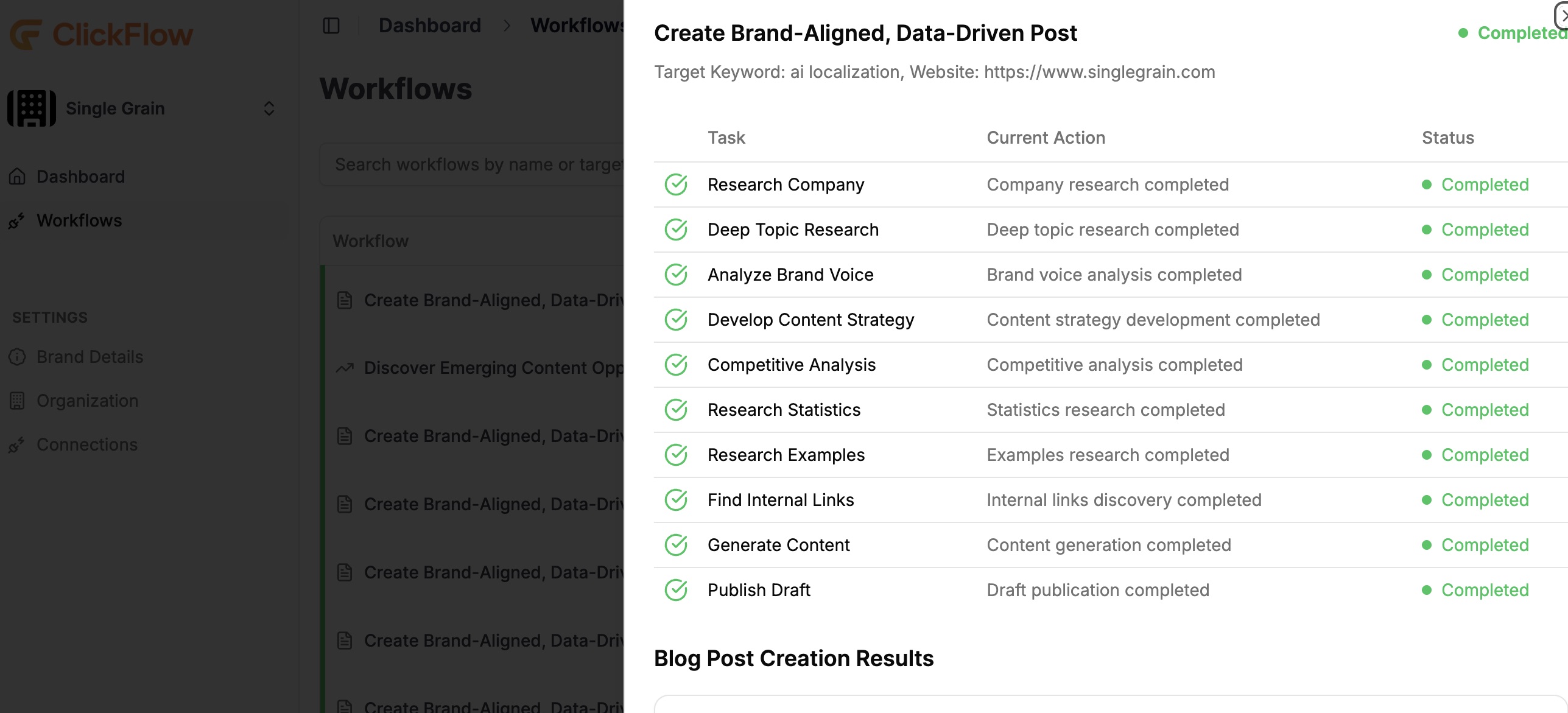 Create brand-aligned, SEO-optimized content with our proven AI workflow.