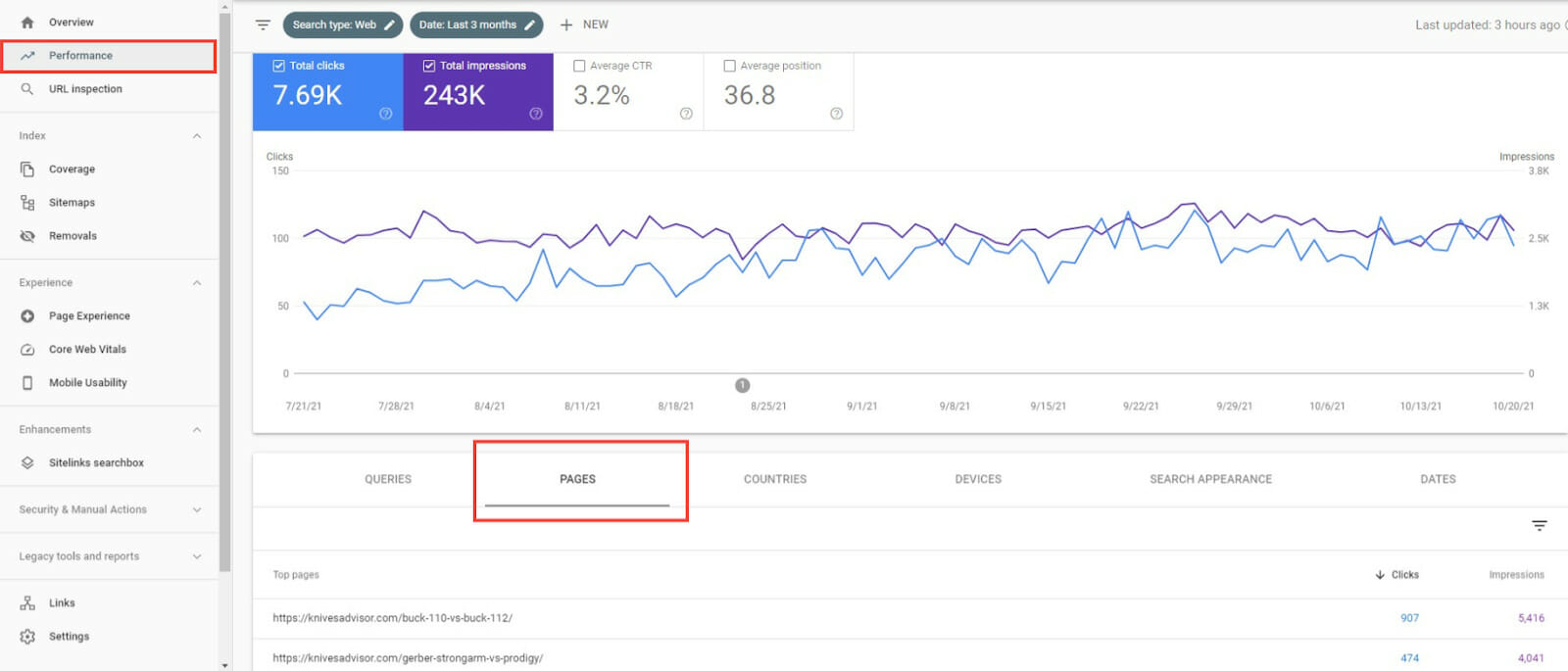 You can find those in your website analysis report. In Google Search Console, it’s under: Google Search Console in the: Performance report > Pages tab > sort by clicks.