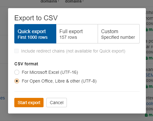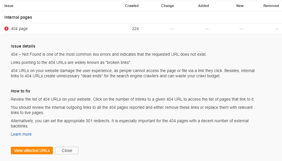 You’ll be left with a list of broken pages on your competitor’s site which have backlinks. Naturally, the larger the site, the more likely this is to work.