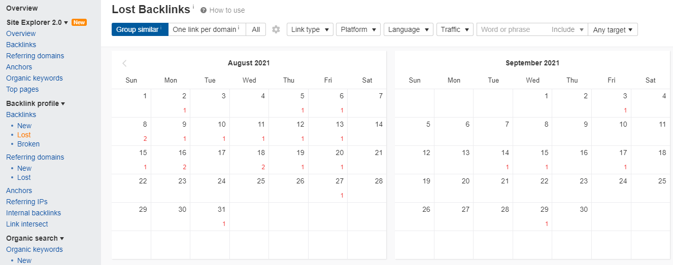 Ahrefs has a Lost Backlinks report, which will alert you when sites remove their links to your site. This is valuable information, and sometimes you may be able to recover the link:
