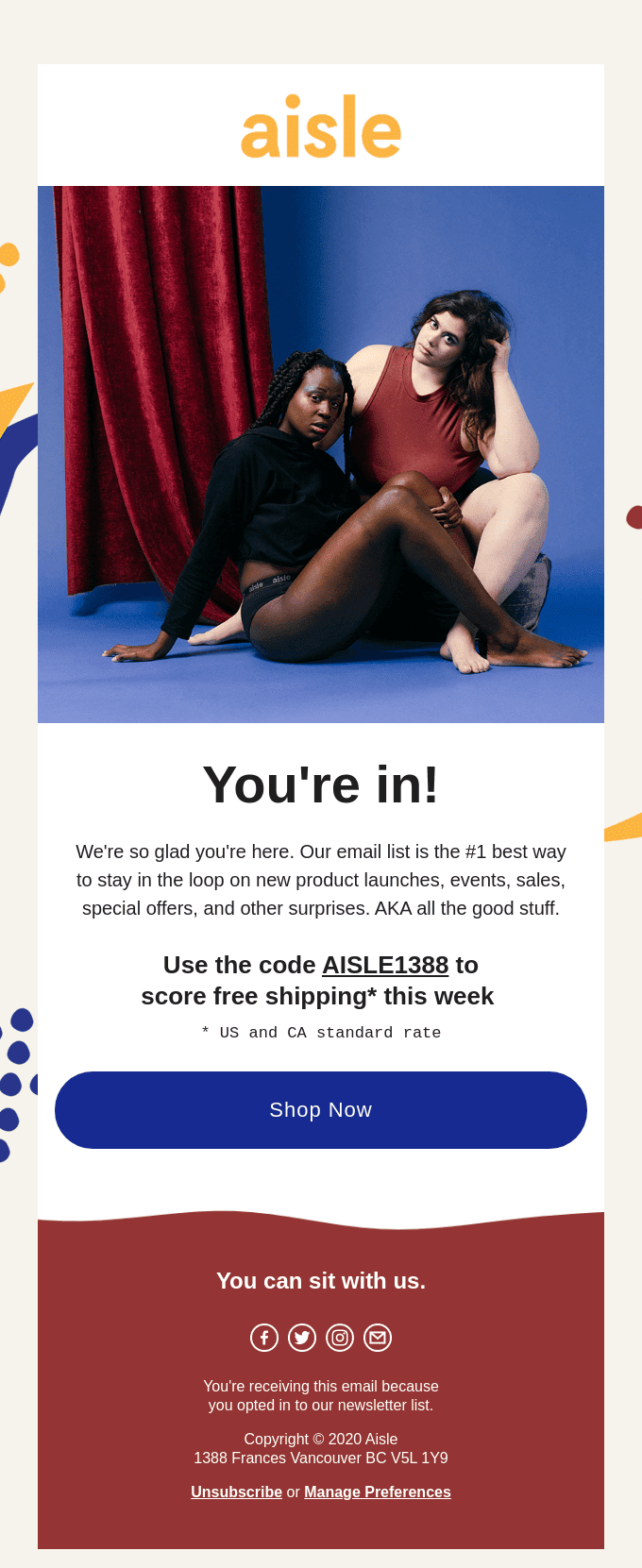 The rule of thumb is that you send three “value” emails for every “sales” email. So don’t rush to share crazy discounts in your first three emails. Instead, focus on showing your brand’s personality, build trust with product reviews or before-and-after photos, show the people behind your brand, and just prove to your customers that they belong.