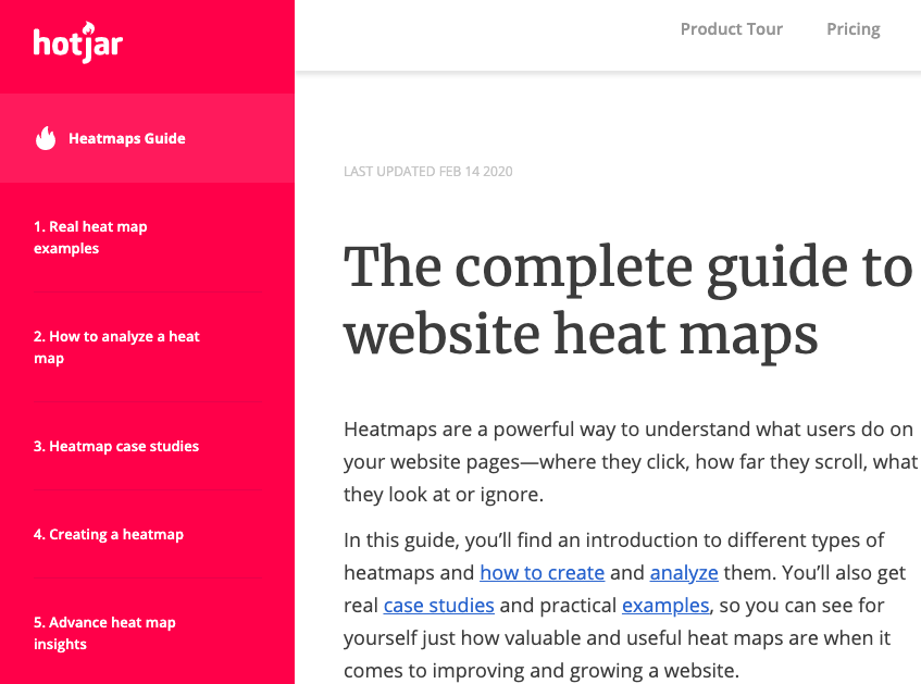 Comprehensively covering one topic, including examples, instructions, case studies and insights like this builds topical authority. If you demonstrate to Google that you’re an expert in the field of heatmaps, you’re likely to rank well for any heatmap-related search query.