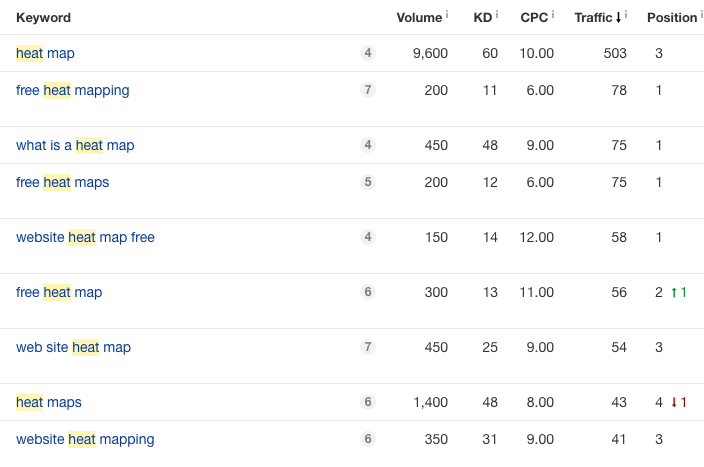 This piece ranks for just about every single keyword related to heatmaps, both broad and long-tail: