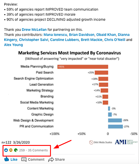 In addition, their CMO, Andy Crestodina, is quick to catch on to trends and create new statistics around them. For instance, when the COVID-19 pandemic hit, he was one of the first to share original research around how it affected agencies:
