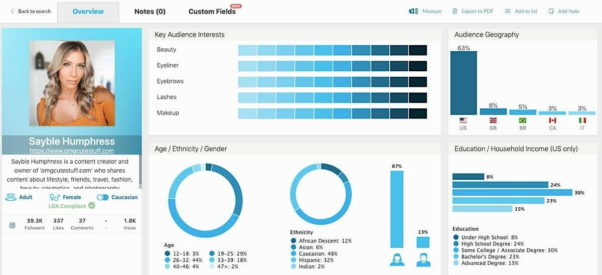 Then you can reach out to the influencers whose audience best matches yours.