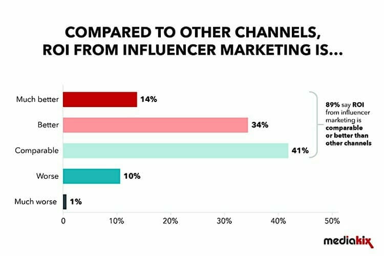 89% of all marketers find ROI from influencer marketing comparable to or better than other marketing channels: